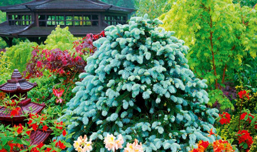 Видовые ели — высокие стройные деревья с хвоей разных оттенков зеленого или сизого. Облик сортов куда разнообразнее: фактически, у каждого вида есть колонновидные, пирамидальные, распластанные, плакучие и стелющиеся сорта. Еще одно направление селекции — получение форм с более яркой, чем у видов, хвоей. В декоративном садоводстве в нашем регионе используются три вида ели: это наша родная ель обыкновенная (Picea abies), два североамериканских вида — ель колючая (Picea pungens) и ель сизая, или канадская (Picea glauca), а также южноевропейская ель сербская (Picea omorica). Продающаяся в садовых центрах ель восточная (Picea orientalis) в нашем климате подчас неустойчива, но ее формы с золотистой хвоей чрезвычайно привлекательны.