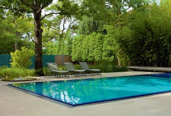 Настил из террасной доски прекрасно смотрится на площадках для отдыха у дома или вокруг бассейна. Настилы делают из прочной, высокой плотности древесины, которая выдерживает длительное пребывание на открытом воздухе. Кроме того, древесина пропитывается антисептиками, маслами и восками, что защищает от гниения. Поверхность качественной террасной доски должна быть рифленой — неровности предотвращают скольжение (это особо актуально для настилов вокруг бассейнов) и повышают стойкость материала к погодным воздействиям. Канавки обычно располагаются на обеих сторонах доски: на лицевой не дают задерживаться дождевой воде, а на тыльной снимают напряжение древесины при перепадах температуры и влажности.
