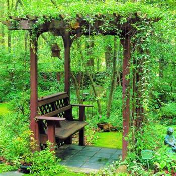 Самым популярным растением для беседок является плющ, который растет как на ярком солнце, так и в тени. Некоторые экземпляры плюща могут существовать в течение нескольких десятилетий. Еще одним неприхотливым и, в тоже время, быстрорастущим растением можно назвать девичий виноград. Только в первый год развития он будет требовать обильного полива, а потом за ним почти не надо будет ухаживать. Он создает на поверхности беседок красивое густое покрытие из листьев.